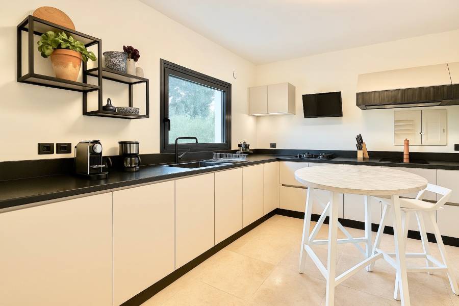 À l’extérieur, le magnifique jardin paysagé, entièrement clôturé et accessible par un portail électrique, assure intimité et sécurité. L’ensemble du terrain met en valeur la villa et renforce la sensation d’espace et de tranquillité.