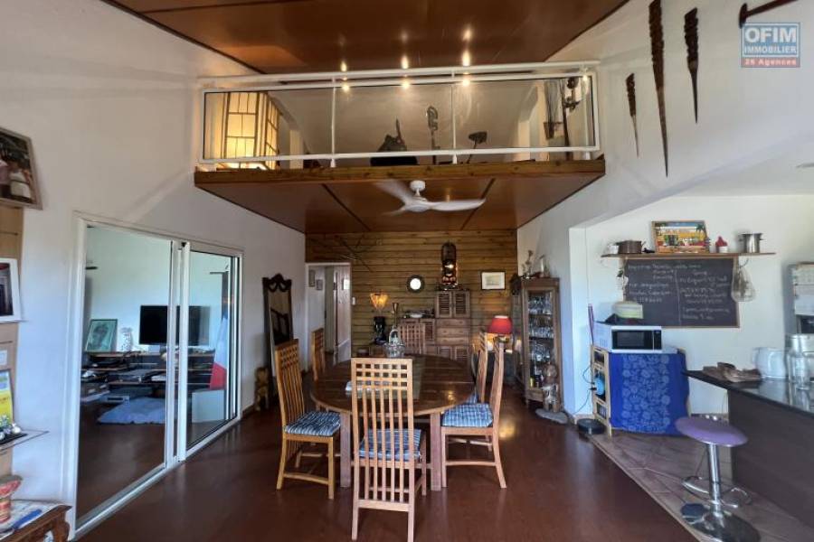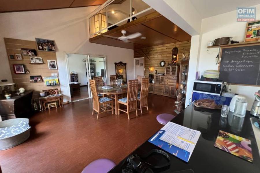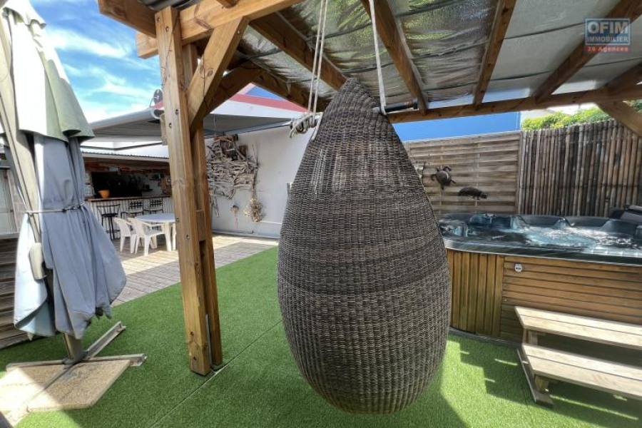 OFIM vous propose à la vente cette belle maison située entre le Ouaki et le centre de la Rivière St Louis, de type F6+ de 146 m2 habitables et 250 m2 utiles, implantée sur 530 m2 de terrain à 190 m d'altitude. Elle se compose au Rdc de deux belles chambres (12 et 14 m2), une suite parentale avec salle d'eau (16 m2), deux WC, une salle de bains, une belle douche extérieur/intérieur...un grand séjour/cuisine US de 38 m2, un salon de 18 m2, un varangue intérieure de 38 m2 donnant sur une jolie arrière-cour (80 m2) avec atelier fermé, cuisine d'été/bar (11 m2) donnant sur un bel espace de partage et détente avec un jacuzzi 4 personnes comme neuf, un garage fermé et accessible de l'intérieur de 41 m2. A l'étage, 2 grandes chambres ouvertes, une mezzanine et une petite varangue sous combles à finir d'équipée, avec vue mer imprenable. Devant, le jardin est fleuri, gazonné et arboré, il y a 5 places de stationnement intérieur et un portail électrique. Equipements : Chauffe eau solaire, plusieurs clims et brasseurs d'air. La TF s'élève à 2700€. La maison est en parfait état, aucun travaux à prévoir. Pour tous renseignements ou visites, contactez François Hart (agent commercial) au [coordonnées réservées] ou [coordonnées réservées] Honoraires à la charge du vendeur 8A70320, Numéro de mandat: 2290ESH Tél. commercial: [coordonnées réservées]