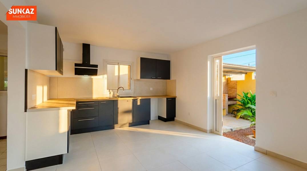 Vue dégagée et extérieur soigné à La Rivière Saint-Louis A La Rivière Saint-Louis, cette maison rénovée récemment offre un cadre de vie agréable dans un quartier calme et pratique au quotidien. Le rez-de-chaussée accueille un grand séjour-cuisine lumineux de près de 53 m², ouvert sur une varangue couverte d'environ 23 m². A l'étage, trois chambres dont une spacieuse de 18 m², un bureau et une salle de bain avec double vasque et WC. Le terrain de 260 m² est entièrement clôturé et bien aménagé : terrasse bois sous pergola, cuisine extérieure couverte avec évier, cour propre et sans entretien compliqué. Aucun travaux à prévoir. Le bien se trouve à moins de 5 minutes du centre de La Rivière, de ses commerces, écoles, services et transports. Un emplacement pratique, tout en restant à l'écart de l'agitation. Honoraires à la charge exclusive du vendeur. Les informations sur les risques auxquels ce bien est exposé sont disponibles sur le site Géorisques : www.georisques.gouv.fr . Une visite ? Appelez-nous au [coordonnées réservées]