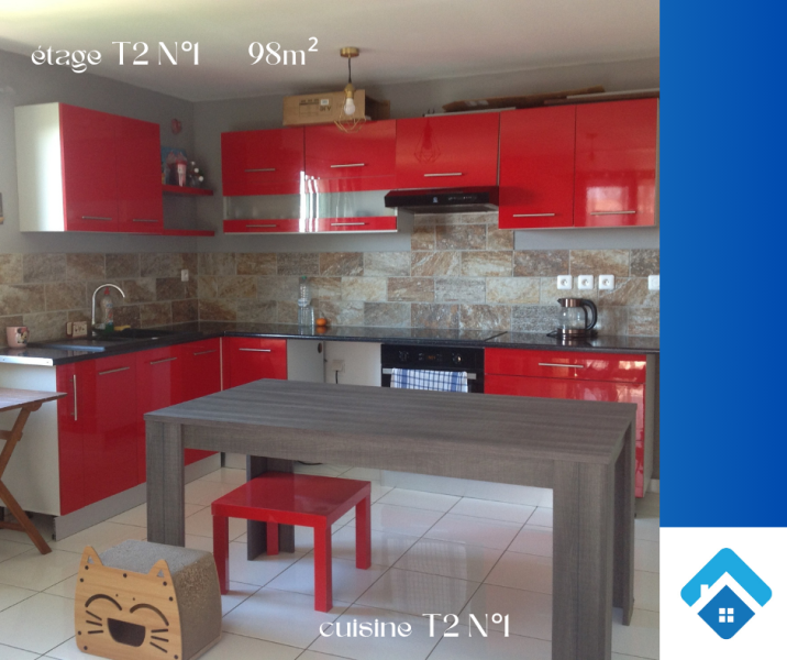 À l’étage : deux T2 de 49,40 m² chacun, avec entrée privative, parfaits pour la location ou accueillir famille et amis en toute autonomie.