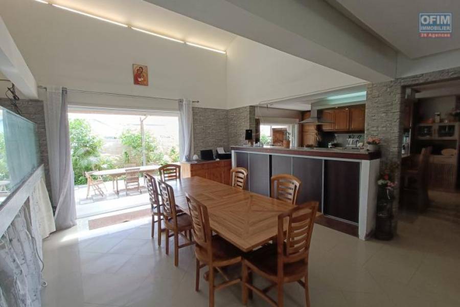 Dans un environnement calme et à proximité des écoles et des commerces, OFIM Saint-Benoit a le plaisir de vous proposer cette villa disposant d'une très grande surface habitable de plus de 200m2 édifiée sur un terrain de 526 m2. Bâtie en 2009 avec d'excellents matériaux et des techniques de construction modernes et innovantes, la villa se compose, au RDC, d'un confortable espace séjour / salle à manger de 45m2 avec une belle hauteur sous plafond s'ouvrant sur la cuisine à ilot central de 24m2, de 2 spacieuses chambres de 20 et 16 m2 avec placards, d'une salle d'eau avec douche et d'un WC séparé. A l'étage vous bénéficierez de 3 chambres de 16 m2 chacunes, d'une deuxième salle d'eau avec douche et d'un second WC séparé. L'étage dispose également d'une lumineuse mezzanine qui offre un espace à la fois chaleureux et intime pour se détendre. Pièce maitresse de cette villa, vous disposerez d'une conviviale varangue de 100m2 avec cuisine au feu de bois où vous pourrez confortablement recevoir votre famille et vos amis. Enfin, un garage de 75m2 a été aménagé permettant de garer un utilitaire et d'y faire du stockage. La taxe foncière s'élève à 2700 m2 et vous aurez la possibilité de stationner plusieurs véhicules dans la cour. Appelez moi au [coordonnées réservées] afin d'organiser rapidement une visite ! Honoraires à la charge du vendeur 3A71693, Numéro de mandat: 1698 Tél. commercial: [coordonnées réservées]