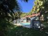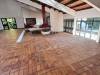 La maison, au charme authentique avec ses poutres apparentes et son vaste séjour lumineux ouvert sur l’extérieur, offre une vue directe sur la piscine et la végétation luxuriante.