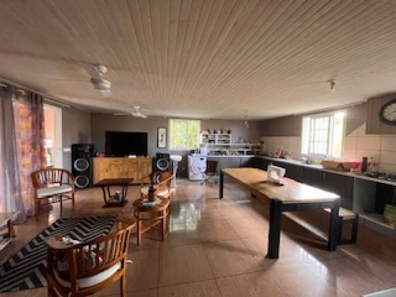 L'agence Dohm Immobilier vous présente cette Maison F4 d'une surface d'environ 139M2 de plain Pied située à Jean Petit au calme . Elle dispose d'un immense séjour/cuisine 43m2 avec accès véranda 12,5m2. le couloir distribue 3 belles chambres 16/13/11m2 et une grande salle de bains 12m2. toilettes. Le PLUS c'est sa cuisine péi de 24m2 avec sanitaires. elle donne accès au jardin.
