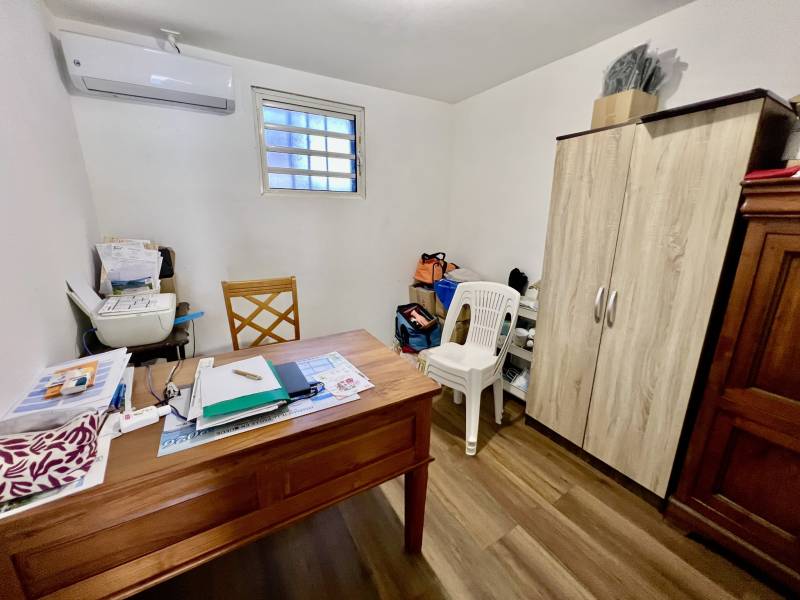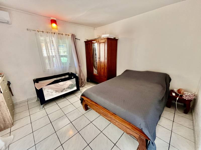 SAINT JOSEPH 97480: Idéalement située à proximité du centre ville et des commodités à pieds, cette villa F5 de plain pied n'attend plus que vous... Côté jour, elle bénéficie d'une cuisine aménagée et d'un séjour lumineux. Côté nuit vous disposez de 4 chambres confortables allant de 10 à 15,50 m2 - d'une vaste salle d'eau avec WC et d'un bureau. Pour plus de fonctionnalité, vous disposez d'une cuisine extérieure, d'un abri voiture et d'un garage d'environ 35 m2 attenant à la maison. Idéal pour qui souhaite en faire sa résidence principale ou de la location saisonnière. Aucun vis à vis.