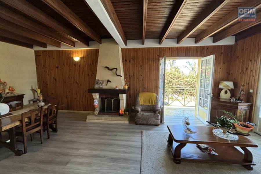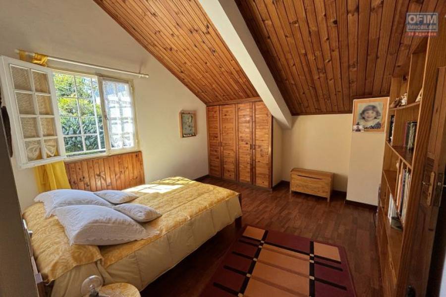OFIM Saint-leu vous propose une belle maison de 97 m2 habitables datant de 1984 en parfait état. Le rez de chaussée s'ouvre sur un grand salon avec cheminée de 30 m2 avec poutres et plafond en bois massif. La cuisine fermée de 8,60 m2 est entièrement équipée. La salle de bains est agencée avec des placards fermés en bois massif et possède un sèche-serviettes électrique. Le coin nuit se situe à l'étage et comprend 4 chambres mansardées hautes sous plafond dont 2 grandes de 12,60 m2 avec placards, une de 12 m2 et une autre de 10 m2. Une magnifique vue mer imprenable s'offre à vous. La véranda de 20 m2 est attenante à un splendide mur entièrement végétalisé. Une buanderie de plus de plus de 6 m2 renferme un chauffe-eau solaire récent ainsi qu'un ballon d'eau chaude électrique ce qui permet de basculer de l'un à l'autre rapidement. Une dépendance de 16 m2 peut être aménagée en bungalow indépendant. Le jardin de 431 m2 possède de belles espèces végétales dont citronnier et goyavier. Possibilité d'aménager un solarium accessible à l'arrière par des escaliers. Taxe foncière : 1681,00€ Altitude : 850 mètres Fosse septique et bac à graisse. Pour tout renseignement contactez Annick Edwards au [coordonnées réservées] Honoraires à la charge du vendeur 6A69721, Numéro de mandat: 1579SL Tél. commercial: [coordonnées réservées]