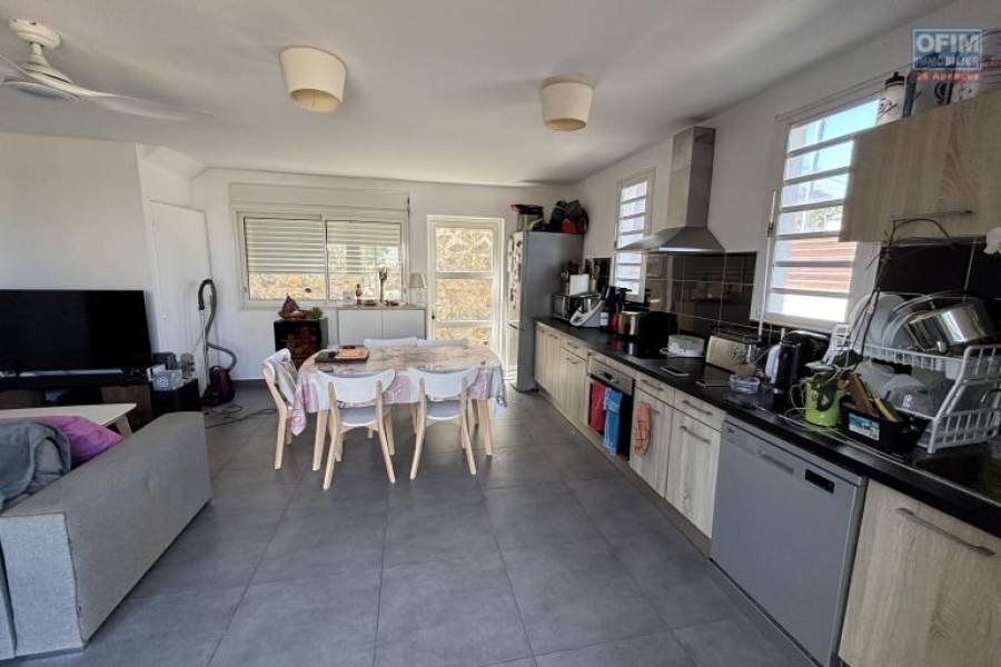 OFIM Saint-Leu vous propose à la vente une charmante villa en R+1 de 78 m2 implantée sur une terrain de 146 m2 à 240 mètres d'altitude. Cette maison située à 7 minutes du centre ville de Saint-Leu se compose au rez-de-chaussée d'un salon/cuisine avec brasseur d'air de 32 m2 ouvert sur une petite terrasse, une buanderie, une suite parentale comprenant une chambre climatisée équipée de brasseur d'air de 13 m2 avec placards et salle d'eau attenante avec douche à l'italienne et WC. A l'étage se trouvent deux chambres climatisées de 10 et 13 m2 avec placards et un salle de bains avec WC d'environ 5 m2. La maison est équipée d'un portail électrique et d'un interphone. Chauffe-eau solaire Fosse septique. Taxe foncière 1400 € Loué 832,00 € jusqu'en juin 2027 Pour tout renseignement contactez Annick Edwards au [coordonnées réservées] Honoraires à la charge du vendeur 6A71533, Numéro de mandat: 1588SL Tél. commercial: [coordonnées réservées]