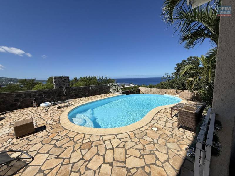 Maison en R+1 constituée de trois logements (T4+T3+T1), garage, belle piscine au sel, située à la Pointe des Châteaux, sur une terrain de plat de 600 m² offrant une vue imprenable sur l'océan et la montagne.