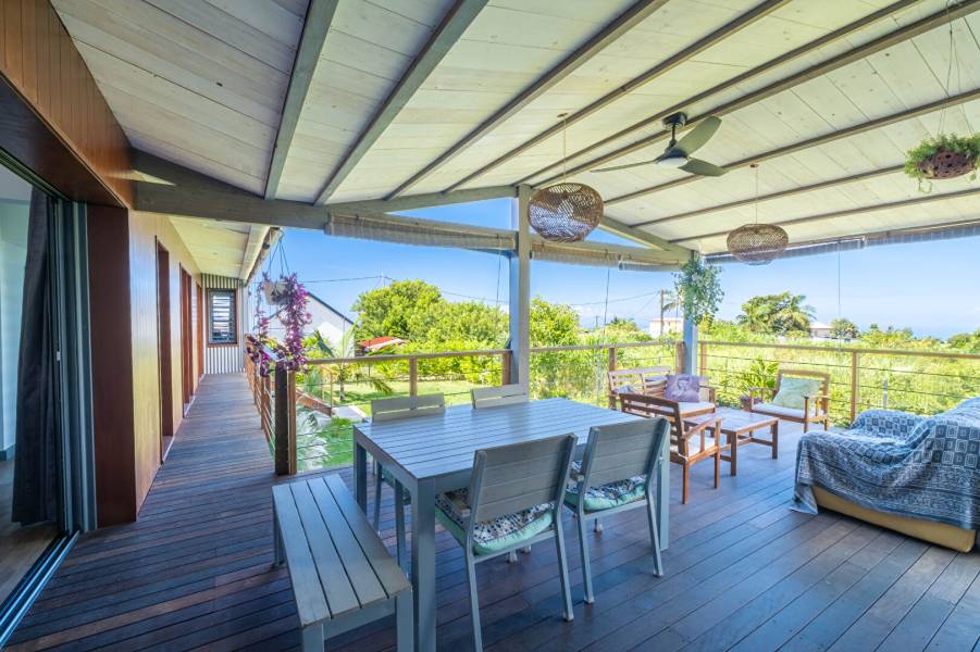 En Exclusivité! Laissez-vous séduire par cette maison construite en 2024, en structure bois, conçue avec une attention particulière portée aux détails, offrant un confort de vie optimal et une excellente qualité de construction. Sécurité et sérénité la résument : la construction est conforme aux normes anti-cycloniques. Les matériaux ont été soigneusement choisis pour garantir la durabilité et la pérennité de la maison. La maison se compose d'un séjour lumineux avec cuisine équipée, ouverts sur une grande varangue. Dégagement avec WC indépendant et salle d'eau avec double vasque et douche italienne. L'espace nuit se compose quant à lui de 3 chambres, dont une suite avec dressing et WC. Le terrain arboré de 550 m² est agréable, propice à la détente. Le Jardin avec terrasse est soigné, idéal pour profiter du climat toute l'année. Nous sommes fiers de vous présenter cette maison unique, chaleureuse, moderne et fonctionnelle, parfaite pour une vie de famille paisible dans un cadre naturel privilégié. Contactez-nous pour plus d'informations ou organiser une visite ! Taxe Foncière 2025 : 1 257 euros Prix de vente: 445 200 euros frais d'agence inclus - honoraires à la charge vendeur Référence annonce : 254690 Non soumis au DPE Les informations sur les risques auxquels ce bien est exposé sont disponibles sur le site Géorisques : www.georisques.gouv.fr. Consommation énergie primaire : Non communiquée. Consommation énergie finale : Non communiquée.