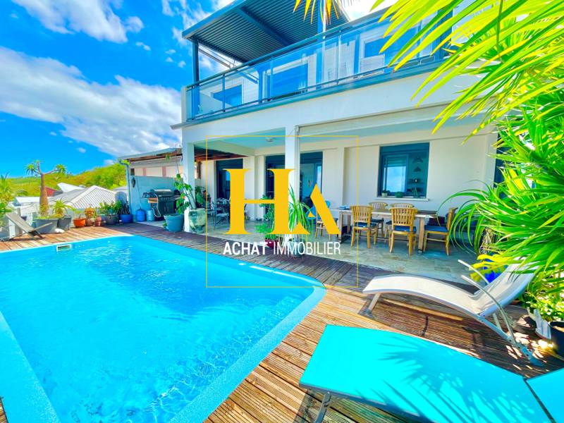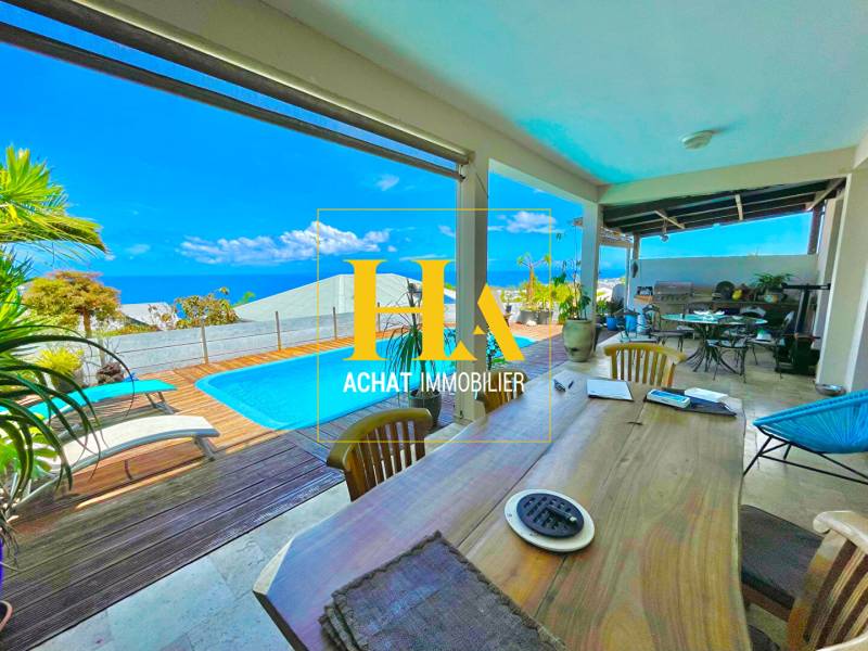 Ha Immobilier vous propose à la vente cette villa T5 de 195,5 m² (147,6 m² habitables) avec VUE MER PANORAMIQUE, située à Grand-Bois, à seulement 60 mètres d'altitude. Construite en 2015 avec des matériaux de qualité, elle offre un excellent confort de vie et se trouve en parfait état. Au rez-de-chaussée, vous découvrirez un espace convivial et lumineux comprenant un spacieux salon de 40 m², une cuisine équipée et aménagée dont le plan de travail et la crédence en quartz ont été changés il y a moins d'un an, ainsi qu'une salle d'eau et une chambre. A l'étage, en plus de deux chambres spacieuses avec vue mer, vous profiterez d'une nouvelle salle d'eau et d'une terrasse offrant une vue panoramique sur tout Grand-Bois jusqu'à Terre-Sainte. En excellent état, la maison ne nécessite aucuns travaux. Sa construction récente garantit une bonne isolation et des finitions soignées. 4 places de parking sont disponibles, dont une couverte. A l'extérieur, son orientation sud-ouest permet de profiter d'une belle luminosité tout au long de la journée, ainsi que de splendides couchers de soleil et de l'observation des baleines. Atouts : En plus d'une dépendance autonome de 18 m², la maison dispose d'une large installation de panneaux photovoltaïques générant environ 1 000 euros par an, revendus directement à EDF. Elle possède également une borne de recharge pour voiture électrique, se situe proche des commodités et à seulement 3 minutes en voiture de l'hôpital de Terre-Sainte. Les informations sur les risques naturels auxquels ce bien peut être exposé sont disponibles sur le site: www.georisques.gouv.fr François GOYON Agent mandataire indépendant RSAC 891 040 545 (EI) Téléphone: [coordonnées réservées] E-mail : [coordonnées réservées] **Honoraires à la charge du vendeur François GOYON (EI) Agent Commercial - Numéro RSAC : 891040545 - SAINT PIERRE.