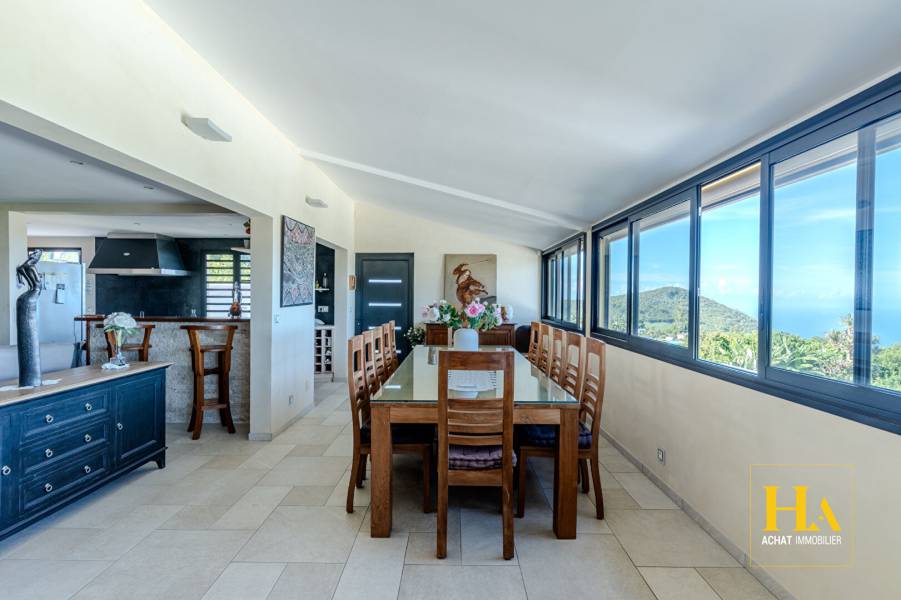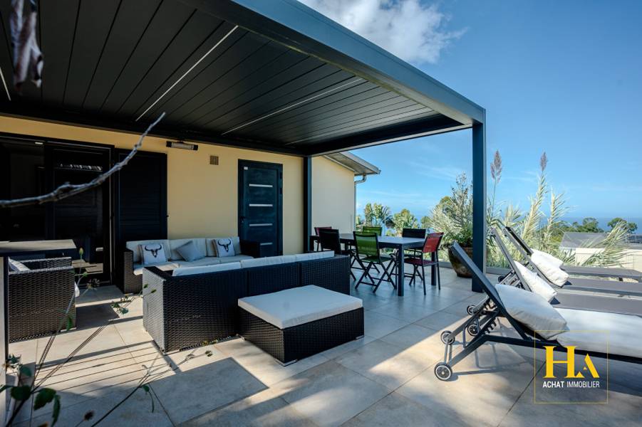 En Exclusivité Villa avec vue panoramique Mont Vert Les Hauts Située à environ 600 mètres d'altitude, dans le secteur prisé de Mont Vert Les Hauts, cette propriété offre un cadre de vie exceptionnel avec une vue imprenable sur l'océan et les montagnes. La maison est organisée sur deux niveaux et comprend trois appartements indépendants, permettant différents projets : résidence principale, projet familial ou investissement locatif. Le logement principal est un T4 de 173 m² avec une spacieuse pièce de vie de 76 m², lumineuse et ouverte sur l'extérieur. Les matériaux choisis apportent charme et élégance : menuiseries aluminium, portes en bois massif et cheminée avec insert. A l'étage, une mezzanine de 30 m² complète l'espace de vie. L'espace nuit comprend : Une suite parentale de 36 m² Une suite invités de 25 m² Une troisième chambre de 16 m² A l'extérieur, la villa dispose d'une grande terrasse de 120 m² avec piscine, aménagée avec une pergola bioclimatique, idéale pour profiter du climat et de la vue panoramique. La propriété comprend également : Un T3 de 58 m² Un T2 de 37 m² Garage carrelé de 50 m² avec buanderie et stockage Borne de recharge pour véhicule électrique Système d'alarme, vidéosurveillance et 2 portails automatiques Implantée sur une parcelle d'environ 600 m², la propriété a été pensée pour offrir des extérieurs faciles à entretenir. Les aménagements privilégient les espaces de vie et de détente, permettant de profiter pleinement de la terrasse et de la piscine sans les contraintes d'un grand jardin. La villa offre ainsi un cadre de vie confortable, idéal pour habiter tout en générant des revenus locatifs. Maison vendue meublée, prête à habiter ou à louer. Bien rare dans le secteur. Photos et renseignements supplémentaires disponibles sur demande. Pour plus d'informations ou pour organiser une visite, contactez votre agence HA IMMOBILIER. Patrice MOULANT [coordonnées réservées] [coordonnées réservées][coordonnées réservées] Agent Commercial indépendant (EI) RSAC 481 585 107 Bien non soumis au DPE Les informations sur les risques naturels auxquels ce bien peut être exposé sont disponibles sur le site: www.georisques.gouv.fr Patrice MOULANT (EI) Agent Commercial - Numéro RSAC : 481585107 - SAINT PIERRE.