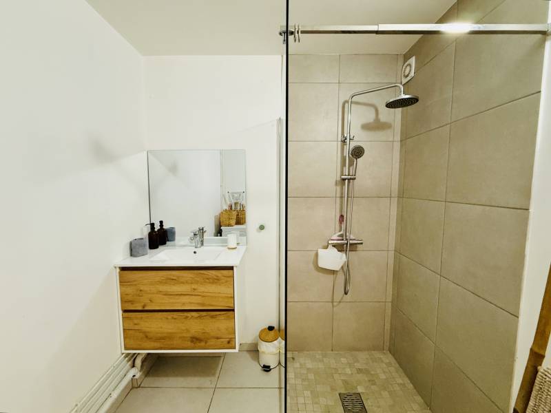 Une chambre climatisée avec accès au second espace extérieur, une salle d’eau avec douche à l’italienne ainsi que des WC indépendants complètent ce niveau.