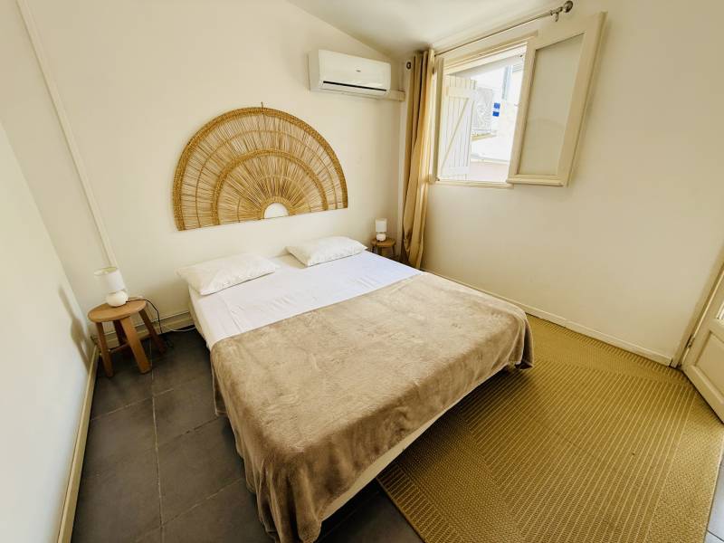 À l’étage, deux belles chambres climatisées, chacune dotée de son dressing, offrent confort et intimité. Parfaitement adaptée à un mode de vie « tout à pied » ou à vélo.