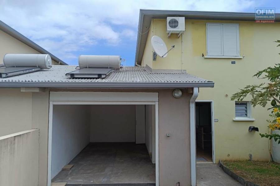 OFIM Ravine des Cabris vous propose cette agréable villa F4 de 84,40 m², située un quartier calme et résidentiel, édifiée sur un terrain plat, clos et sécurisé de 239 m². Cette résidence de quatre villas est idéalement implantée, elle se trouve à proximité immédiate des axes routiers , des collèges, du lycée, des transports et de toutes les commodités. Au rez-de-chaussée : - 1 Pièce de vie lumineuse climatisée de 30 m² (séjour/cuisine) ouverte sur une varangue et une pergola donnant sur un jardin d’environ 150 m² - 1 Chambre de 11,20 m² avec placard de rangement ( climatisée) - 1 salle d’eau avec douche à l’italienne et WC - 1 Jardinet planté de papayer et fruit de la passion. A l'étage : - 1 Chambres de 13 m² avec placard de rangement (Climatisée) dont une avec terrasse de 4,5 m² et vue mer - 1 Chambres de 13,50 m² avec placard de rangement (Climatisée) - 1 salle de bain de 4 m² - 1 WC indépendant Extérieurs et équipements - 1 Jardin plat, agréable et facile d’entretien - 1 Garage fermé par rideau électrique de 16m² - 1 Place de parking supplémentaire devant le garage Chauffe-eau solaire 300 L Assainissement individuel Aucune charge de copropriété Contact pour renseignements et visites : Mr Rigaut Jean - Agent commercial - Tél : [coordonnées réservées] Mail: [coordonnées réservées] Honoraires à la charge du vendeur, Honoraires à la charge du vendeur 17A71981, Numéro de mandat: 1387 RDC Tél. commercial: [coordonnées réservées]