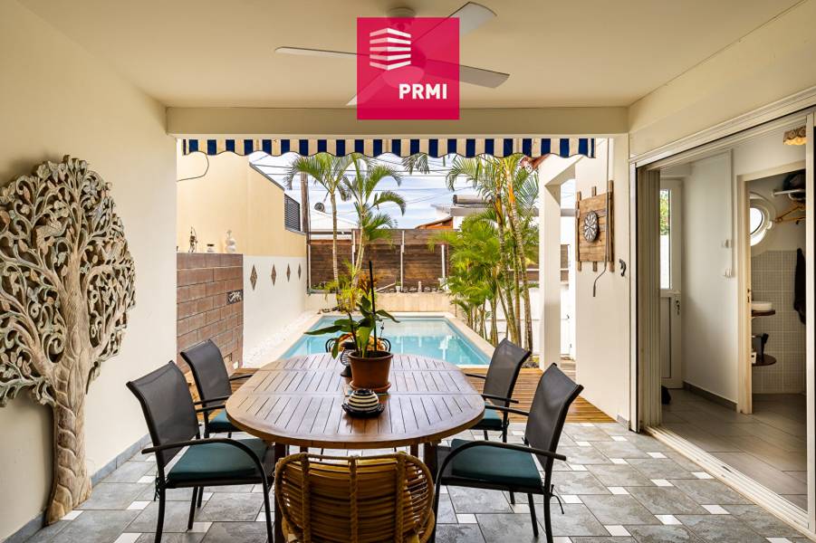 En Exclusivité, l'Agence PRMI à l'honneur de vous propose cette Charmante Maison individuelle de type F4 idéalement située dans le quartier très recherché de Terre Sainte à Saint-Pierre 97410. A seulement quelques minutes à pied du front de mer, du centre-ville, des commodités du secteur et du CHU, tout en profitant d'un environnement calme où il fait bon vivre. Construite en 2005 et parfaitement entretenue, cette maison d'environ 90 m² habitables, implantée sur un terrain de 165 m², offre un cadre de vie à la fois confortable et convivial. Dès l'entrée, le séjour avec cuisine ouverte invite aux moments de partage, dans une atmosphère chaleureuse et fonctionnelle. Le rez-de-chaussée dispose également d'une salle d'eau et d'un WC séparé pour plus de praticité au quotidien. A l'étage, trois chambres accueillantes composent l'espace nuit, complétées par une salle de bain et un WC indépendant. A l'extérieur, le Charme opère Immédiatement ! A l'avant de la maison, la Piscine au sel s'étend dans le prolongement direct de la Varangue de 12 m², créant un véritable espace de détente baigné de douceur. A l'arrière, une Cour plus intimiste abrite un Jacuzzi, à l'abri des regards, pour profiter pleinement des belles soirées du Sud, Une place de stationnement sécurisée à l'intérieur de la propriété vient compléter ce bien sans travaux à prévoir ! Une maison chaleureuse, prête à accueillir une nouvelle histoire, dans l'un des secteurs les plus prisés de Saint-Pierre ! Le reste se découvre lors de la visite ! Pour plus de visuel et d'informations une visite virtuelle est disponible ! Contactez dès maintenant Bruno DESCONTUS pour organiser une visite au [coordonnées réservées] ou par email à [coordonnées réservées]