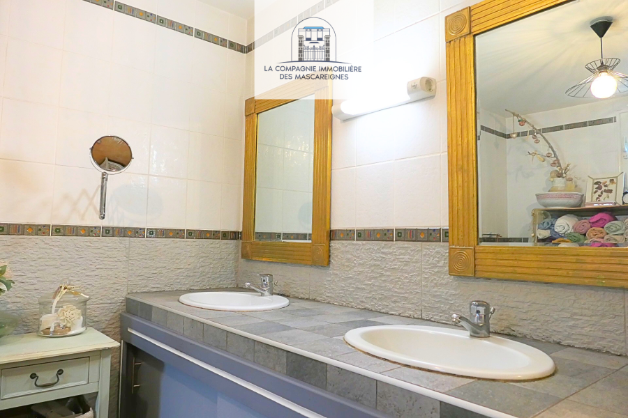 À proximité des chambres se trouve un WC indépendant ainsi qu’une salle d’eau avec double vasques.
