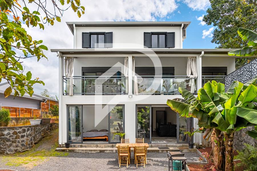 Votre agence Stéphane Plaza Immobilier est ravie de vous présenter à la vente cette villa de caractère, pensée pour conjuguer confort familial, indépendance des espaces et prestations de qualité. Située dans un quartier résidentiel calme, bénéficiant d'un climat idéal et d'un accès rapide à la 4 voies, elle offre un cadre de vie privilégié, à la fois pratique et agréable. La maison se compose de deux logements distincts : - Un appartement T3 : Cet espace fonctionnel dispose d'une pièce de vie conviviale avec cuisine équipée moderne, de deux chambres confortables et d'une salle de bain. Un logement parfaitement adapté pour accueillir des proches ou envisager un revenu locatif. - Un appartement T5 en duplex : Le logement principal séduit par ses volumes et sa luminosité. Au rez-de-chaussée : une cuisine spacieuse et moderne ouverte sur un grand séjour traversant, prolongé par de larges baies vitrées donnant accès à une varangue accueillante. Une suite parentale avec dressing, salle de bain et toilettes privatifs complète ce niveau. A l'étage : trois chambres supplémentaires, une salle de bain et des toilettes viennent organiser l'espace nuit de manière optimale. Les extérieurs sont à la hauteur de l'ensemble, avec un jardin arboré et paysager de 1 000 m² réparti sur deux niveaux. Ils offrent : une grande piscine chauffée avec plage, un kiosque spacieux pour profiter de moments conviviaux, ainsi qu'une terrasse en cailleboti à l'arrière de la maison, idéale pour prolonger les soirées en toute sérénité. Réalisée avec des matériaux soignés et durables, cette propriété conjugue élégance, fonctionnalité et confort moderne. Elle représente une opportunité rare pour qui recherche une villa de standing, dans un environnement privilégié, alliant calme, accessibilité et qualité de vie. Son prix : 640.500 euros Frais d'agence inclus Honoraires charges VENDEUR Mandat N°385 Votre conseiller en immobilier : Pierre GIRAUD [coordonnées réservées] · RSAC : 2025AT00129 Les informations sue les risques auxquels ce bien est exposé sont disponibles sur le site Géorisques :www.georisques.gouv.fr Consommation énergie primaire : Non communiqué Consommation énergie finale : 0KWH/M2/an Cette annonce vous est proposée par l'agence immobilière STEPHANEPLAZAIMMOBILIER Saint-Pierre REUNION Le réseau Stéphane Plaza Immobilier est fondé sur la bienveillance, avec des partenaires proches de vous, performants et connectés. Notre ambition est de vous accompagner tout au long de votre projet de vie, que vous souhaitiez vendre, acheter ou louer votre bien. UN SAVOIR FAIRE ET UN SAVOIR ETRE ORIGINAL ET DIFFERENCIANT SAS JF IMMOBILIER Siren 981 421 324 000