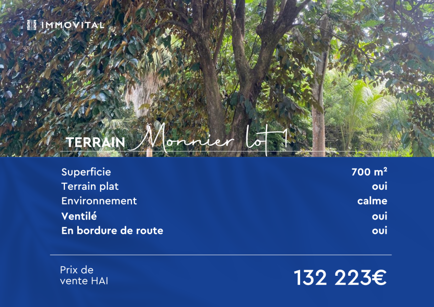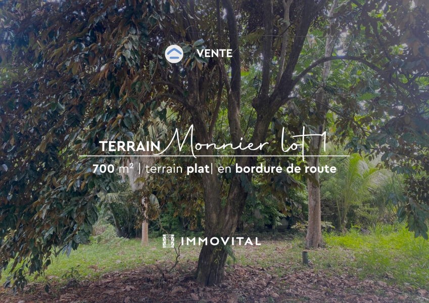 IMMOVITAL vous propose à la vente ce superbe terrain plat de 700 m2, situé dans le quartier recherché de Monnier, sur la commune du Lamentin, en Guadeloupe.