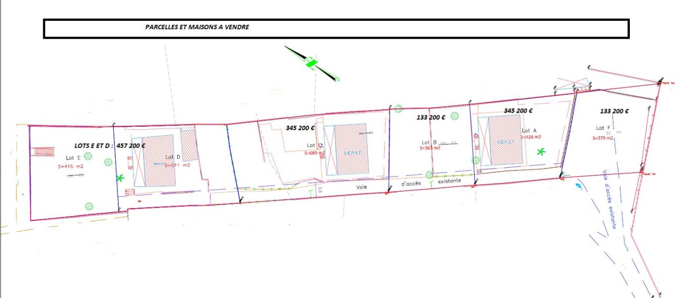 Enfin, les lots D et E sont vendus ensemble pour un montant global de 457 200 €, comprenant une maison louée édifiée sur un terrain d’environ 511 m2 (lot D) et un terrain d’environ 413 m2 (lot E).