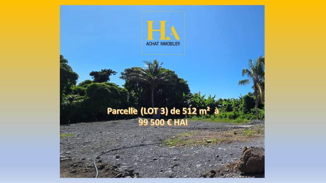 HA IMMO a le plaisir de vous proposer, à Sainte-Rose, dans le secteur prisé de Bonne Espérance, un lotissement de 6 parcelles viabilisées, bornées et prêtes à bâtir. Ces terrains bénéficient d'un environnement calme. Lot 9 - Surface : 382 m² Prix : 82 500 euros (Honoraires à la charge du vendeur) Ces terrains se situent en zone 1AUc du PLU, offrant une emprise au sol maximale de 50 %. La hauteur de construction autorisée est de 6 mètres à l'égout et 9 mètres au faîtage. Chaque parcelle dispose d'un accès direct à la Route Nationale 2 et d'un superbe panorama sur l'océan. Assainissement : fosse septique Pour plus d'informations ou pour organiser une visite, contactez-moi : Vanina TREMOULU (EI) [coordonnées réservées] [coordonnées réservées] Agent commercial EI : RSAC: 432 017 713 Réseau mandataire HA.IMMO N° mandat 975117 Bien non soumis au DPE Plus d'informations sur www.ha.immo Les informations sur les risques naturels auxquels ce bien peut être exposé sont disponibles sur le site: www.georisques.gouv.fr Carte T n°CPI9742 2020 000 004 5143-délivrée par la CCI de la Réunion Siège Social: 4 rue Franck Camille Cadet-ZIE Les Sables-97427 L'Etang Salé Assurance: MMA IARD, 17 boulevard Marie et Alexandre Oyon-72030 Le Mans Cedex 9 Vanina TREMOULU (EI) Agent Commercial - Numéro RSAC : 432017713 - SAINT DENIS.