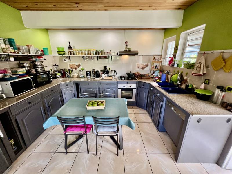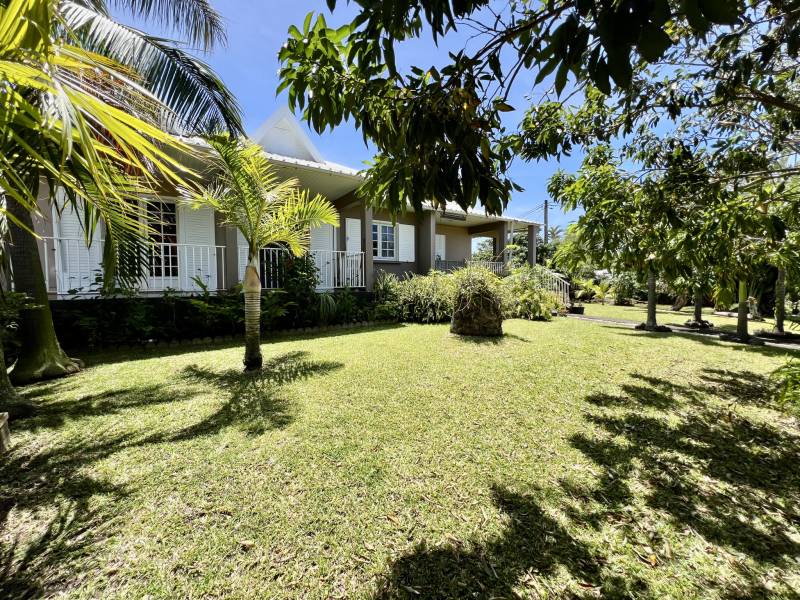 SAINT JOSEPH 97480 - À seulement quelques minutes du CENTRE-VILLE, découvrez cette charmante villa familiale de type 5, entièrement de plain-pied, d'une surface habitable d'environ 110 m2. Cette maison présente de nombreux atouts, notamment des volumes généreux qui sauront vous séduire. Côté jour, elle dispose d'une agréable pièce à vivre de 44 m2, composée d'un séjour chaleureux de 31 m2 et d'une cuisine équipée, fonctionnelle et ouverte sur l'extérieur. L'espace nuit comprend 4 belles chambres de 12 m2 chacune, une salle d'eau de 6 m2 et un WC. À l'extérieur, vous profiterez d'un magnifique jardin joliment arboré, d'une terrasse de 44 m2, de deux varangues de 29 m2 et 5 m2. Une cuisine d'été de 12 m2 , une piscine hors sol et une petite douche extérieure viennent parfaire l'aménagement de cette villa très conviviale. Un garage de 26 m2 est également à votre disposition. Nichée au sein d'une vaste parcelle de 1290 m2 entièrement constructible, cette résidence offre de multiples possibilités d'investissement, telles que la division de la parcelle ou la construction de bungalows. Proche de toutes les commodités (écoles, collège, lycée...). Idéal famille ou projet touristique.