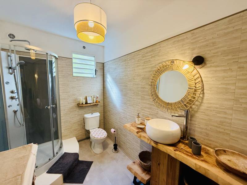 SAINT JOSEPH 97480 - N'ATTENDEZ PLUS... Venez visiter cette belle villa d'environ 210 m2 divisée en deux logements distincts située à 5 minutes du centre. Au 1er étage, la villa fait 129 m2. Ell est cozy et est parfaitement entretenue et fonctionnelle, bénéficie d'une cuisine équipée ouverte sur une charmante pièce à vivre donnant un accès direct à la varangue agréable d'environ 30,86 m2. Le coin nuit offre trois chambres confortables, 1 vaste salle de bains / salle d'eau ainsi qu'un bureau pour plus de fonctionnalités. Vous profiterez d'une piscine chauffée et d'un joli jardin arboré avec un accès direct depuis la varangue. Au rez de chaussée, un F3 entièrement équipé d'environ 81 m2 habitables se compose d'une belle cuisine d'environ 37,30 m2 - de deux grandes chambres et d'une salle d'eau avec WC. Idéal pour qui souhaite en faire de la location saisonnière. Bonne rentabilité locative en cours d'exploitation. Le tout implanté sur environ 1090 m2 de terrain. Cadre de vie fort agréable, jolie vue mer. Familiale, confortable et conviviale, cette villa saura vous séduire. Elle conviendra à une grande famille souhaitant avoir 5 chambres ou conviendra parfaitement à un projet mixte d'habitation + location saisonnière!