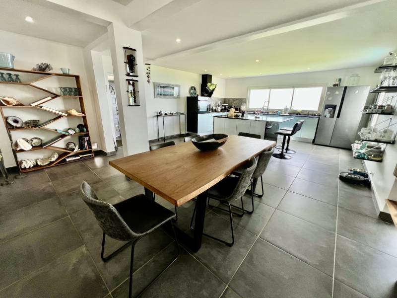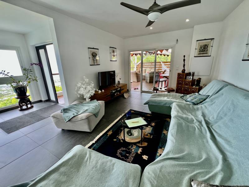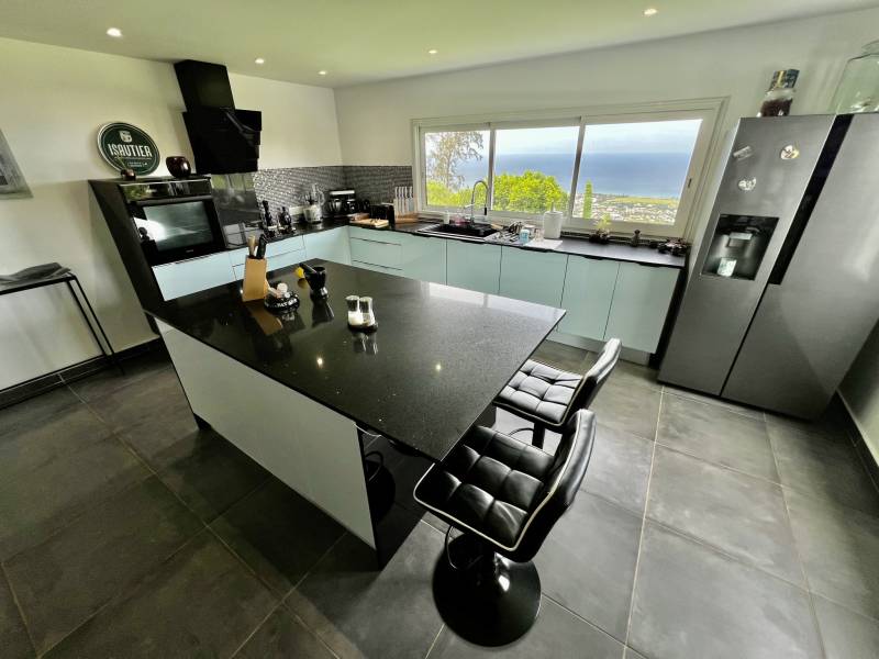 SAINT JOSEPH 97480 - BELLE OPPORTUNITÉ pour cette villa F4, moderne, lumineuse et fonctionnelle. Idéalement située à mi-hauteur sur environ 1420 m2 de terrain arboré et entretenu, la villa offre un cadre et un confort de vie fort agréable. Vous serez accueillis côté jour par une somptueuse pièce à vivre prolongée par un séjour convivial d'environ 37 m2 ouvert sur la cuisine aménagée équipée donnant un accès direct à la varangue depuis laquelle vous bénéficierez d'une vue imprenable sur le littoral. Le coin nuit comprend 3 chambres dont une suite parentale d'environ 33,20 m2 - 1 WC et une vaste salle d'eau avec douche à l'italienne. Idéal pour qui recherche de beaux volumes. Dans un secteur facile d'accès. Possibilité de vente meublée.