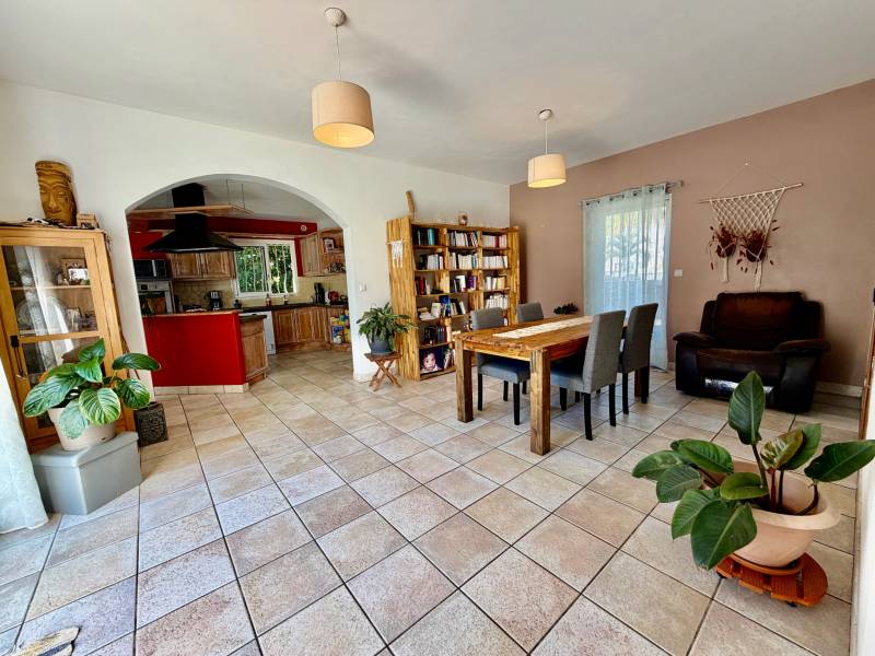 SAINT JOSEPH 97480 - À découvrir rapidement, cette magnifique villa familiale de type 5, offrant une surface habitable de 180 m2, le tout implanté sur une vaste parcelle plane de 1300 m2 environ. Idéalement située dans un quartier agréable, cette villa offre de beaux volumes. Le coin jour bénéficie d'un séjour lumineux de 27 m2, d'une salle à manger et d'une cuisine aménagée et équipée de 18 m2, le tout ouvert sur la vaste et belle varangue de 40 m2. Idéal pour passer de supers moments entre amis ou en famille. Profitez de 4 chambres confortables dont 2 composées de leur propre salle de bains, de 2 salles de bains et d'un WC indépendant. Pour plus de fonctionnalité, la maison propose également un cellier et un bureau. À l'extérieur, la belle piscine au sol, ne manquera pas de vous plaire. Facilement accessible et proche des commodités.