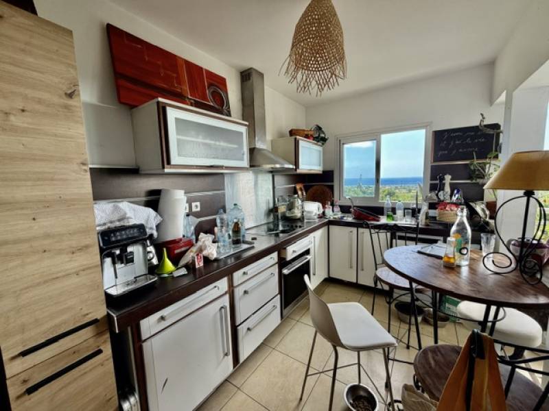 SAINT PIERRE 97432 - Coup de coeur pour cette belle villa T4, agréable à vivre et confortable implantée sur environ 220 m2 de terrain. Située dans un environnement prisé, la villa bénéficie de 3 niveaux. Côté jour, elle bénéficie d'une belle cuisine aménagée équipée d'environ 11 m2, d'un chaleureux séjour d'environ 33 m2 et d'une terrasse fermée ouverte sur la belle piscine au sol. Le coin nuit dispose de trois chambres confortables, de 2 salles d'eau/WC. Très belle vue mer. Située à proximité des commodités nécessaires au quotidien.
