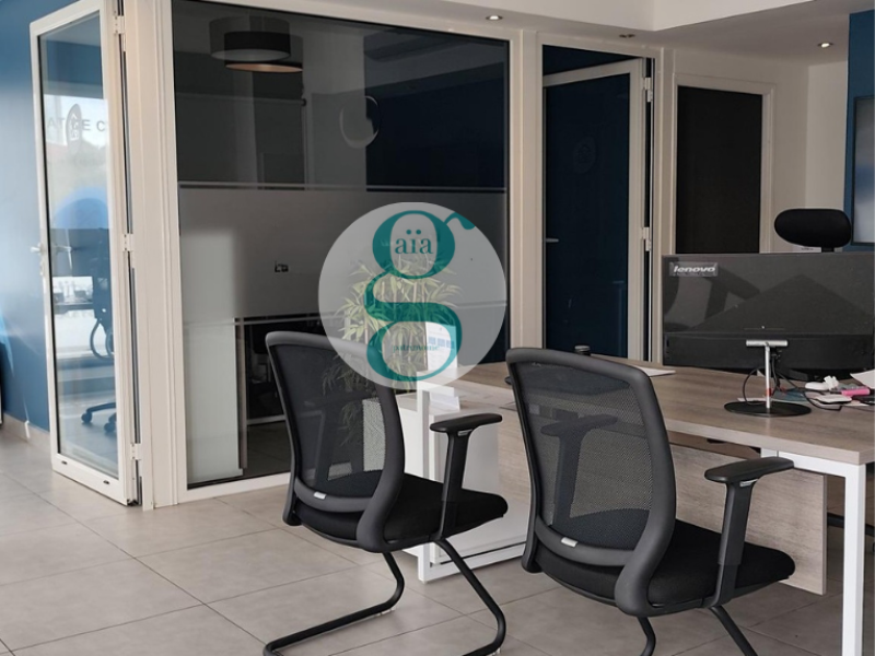 Au RDC d'un immeuble de standing, en coeur de ville de Saint-André, sur voie passante, local d'une superficie de 70m2 comprenant un espace accueil, 3 bureaux, un local informatique, une cuisine, des WC.