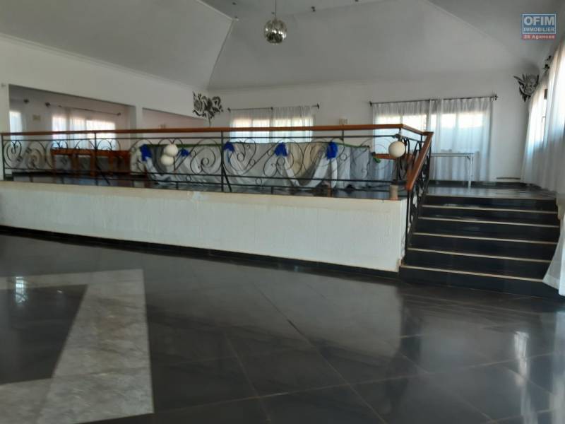 La propriété comprend, une grande salle de réception qui peut accueillir jusqu'à 300 personnes pour tout événement familial( mariage, baptême etc..) ou réunion de tout genre. Elle dispose de 2 cuisines en arrière plan pour les préparations des repas. A l'extérieur, un centre de loisir comprenant un espace pour enfant, un terrain de basket, une salle de jeu et 2 piscines dont un grand bain de 12x25 m avec terrasse, 2 bungalows, un grand parking. Facile d'accès et pas loin du centre ville