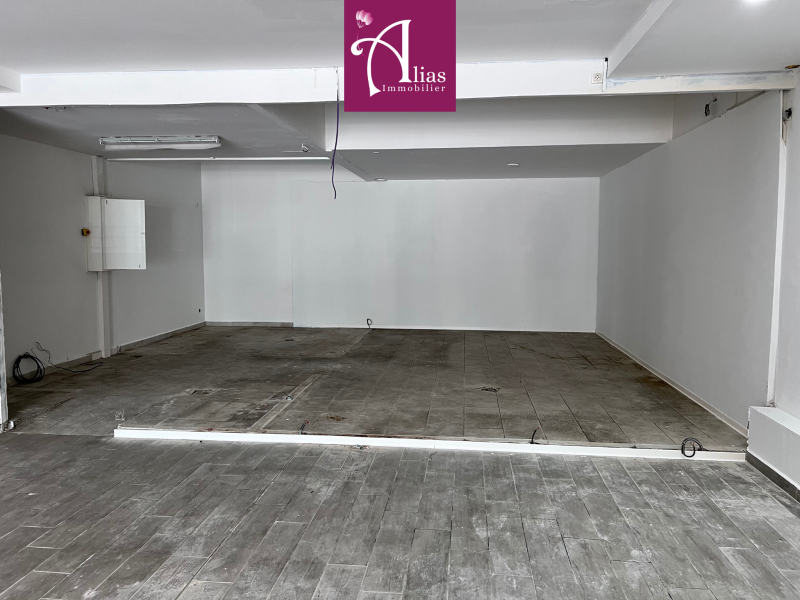 Local en bon état : livré carrelé et peint, avec faux-plafond, électricité, vitrine avec porte à la française et rideau métallique motorisé