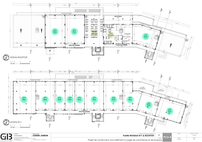 Au 1er étage : 10 lots modulables de 72 à 192 m2 , des espaces exclusivement dédiés aux bureaux, parfaits pour des activités professionnelles variées ou de services.