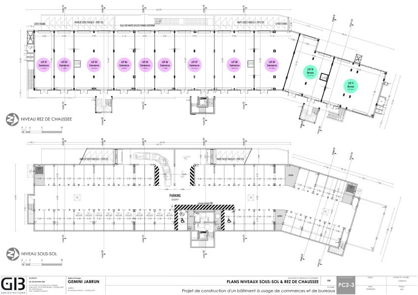Au Rez-de-chaussée : 11 lots modulables de 70 à 155 m2 , des espaces adaptés pour commerces, professions médicales, activités financières et autres services.
