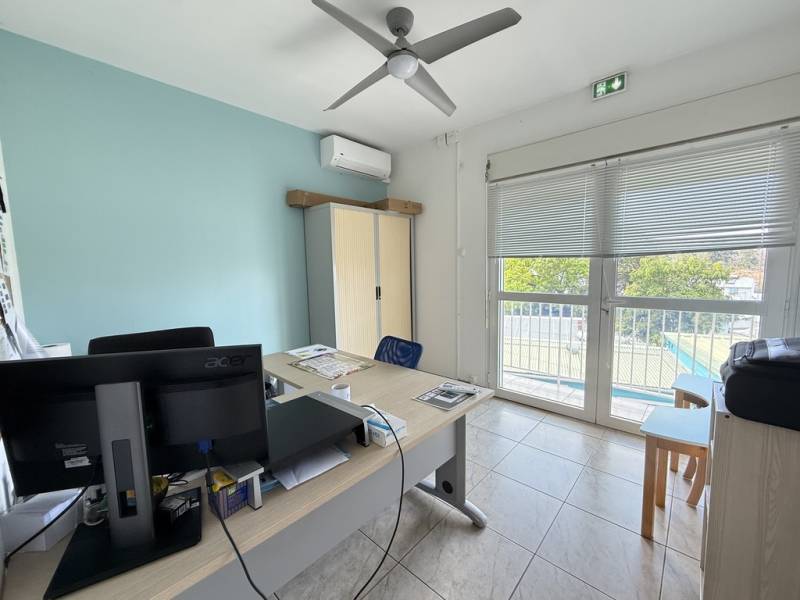 situé au premier étagen relié par 2 escaliers extérieurs, 2 portes d'accès sur coursives / balcon, et volets roulants motorisés, 5 places de stationnements extérieurs devant le local