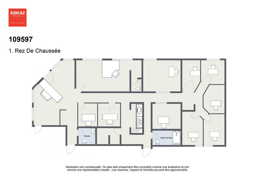 Bureaux en angle avec vitrine - Saint-Pierre centre Bonne visibilité, accès facile, bureaux prêts à l'emploi. Situé à l'angle de deux rues proches du centre-ville, ce local de 220 m² propose plusieurs bureaux lumineux, une réception accueillante, des rangements intégrés et une climatisation bien répartie. Le lieu est adapté aux activités professionnelles. Il se trouve au rez-de-chaussée d'un immeuble bien entretenu et dispose de trois places de parking extérieures. Visite virtuelle disponible sur demande. Besoin d'un espace pour votre activité ? Appelez SUNKAZ au [coordonnées réservées].