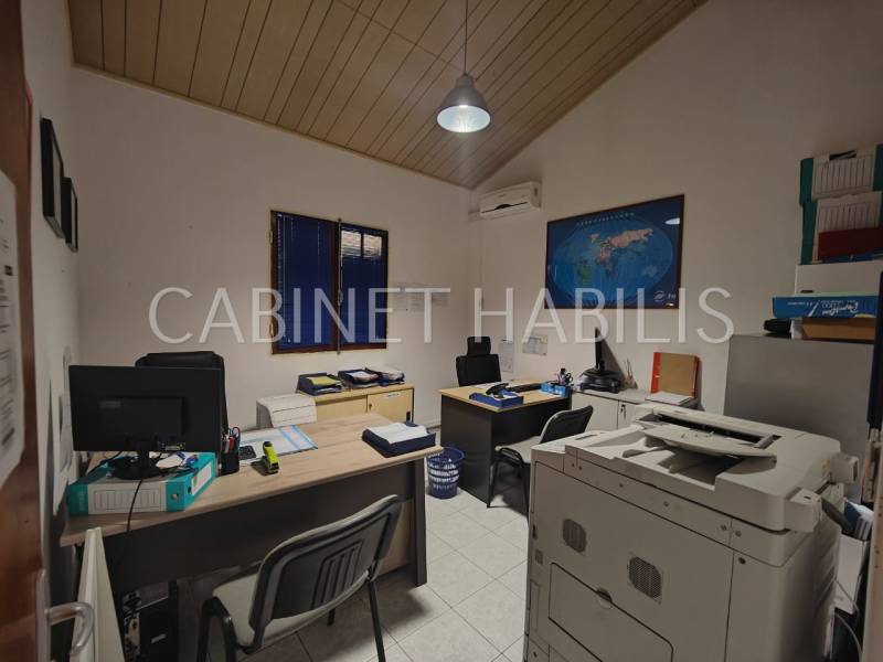 Cette maison à usage professionnel offre un espace spacieux et fonctionnel.Elle dispose d'une grande salle ainsi que de trois bureaux, idéals pour favoriser un environnement de travail dynamique.