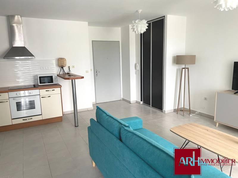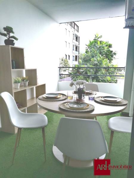 ST DENIS, Montgaillard - Résidence Bois de Roses, 46 chemin de la Vierge - Bel appartement meublé T2 au 1er étage d'une superficie habitable de 42 m² comprenant un séjour avec placard, une cuisine américaine, une salle d'eau avec wc, une chambre avec placard + une varangue d'une superficie de 9 m² environ et un petit balcon. Un parking au sous sol.