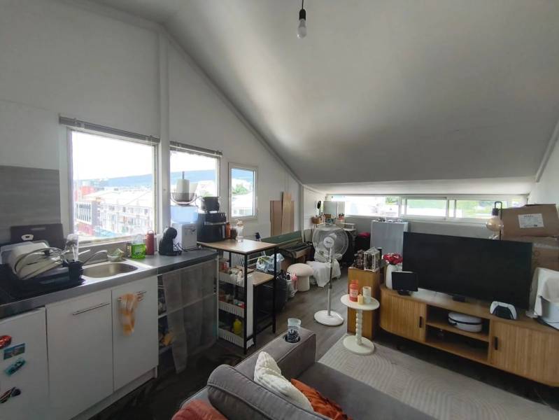Au 4ᵉ et dernier étage sans ascenseur, il se compose d’une agréable pièce de vie avec kitchenette équipée, ainsi que d’une salle d’eau avec WC.