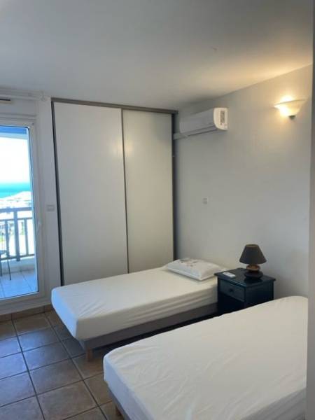 Ce bel appartement offre un hall d'entrée avec placard, un séjour - salle à manger climatisé ouvert sur une varangue, une cuisine équipée (plaques, hotte, four, frigo, meubles bas et hauts, lave linge), deux chambres climatisées avec placard donnant sur la 2ème varangue, une salle de bains baignoire et double vasque, un wc séparé.