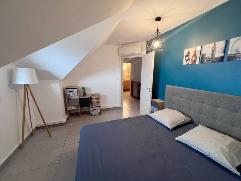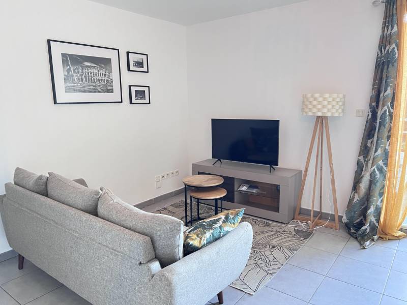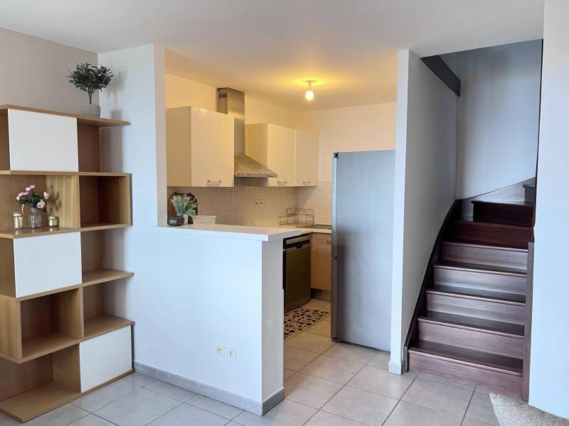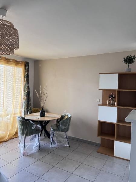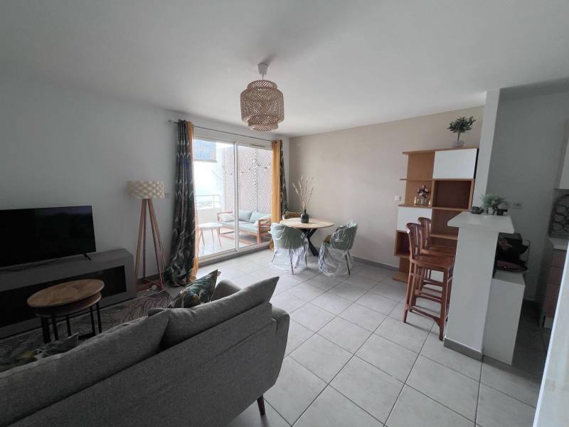 Charmant T3D Meublé situé à Sainte Clotilde dans résidence calme et sécurisée, d'une surface hab de 58.30 m2 + une varangue de 12.10 m2. Composé de : une entrée, un séjour, une cuisine, deux chambres, une salle de bains, deux WC.