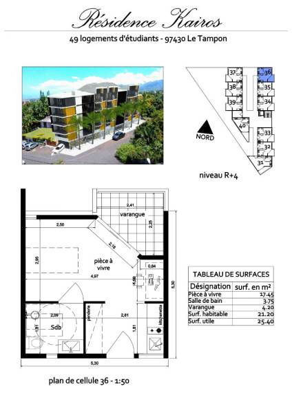 *** A COTE DE L'UNIVERSITE*** L'agence LOGER propose à la location un studio de 21 m2 situé au 4ème étage de la résidence KAIROS, à 2 pas de l'Université. Ce studio comprend une pièce principale avec coin cuisine, une salle d'eau avec WC et une varangue. Le bien dispose également d'une place de parking. Les informations sur les risques auxquels ce bien est exposé sont disponibles sur le site Géorisques : www.georisques.gouv.fr Laurent FAUCHON (EI) Agent Commercial - Numéro RSAC : - .
