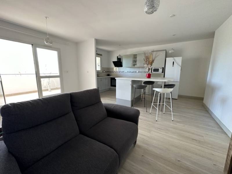 Bel appartement F3 meublé de 61.50m² au 1er étage d'une résidence calme et sécurisée comprenant 18 lots d'habitation et 27 places de stationnement au total.
