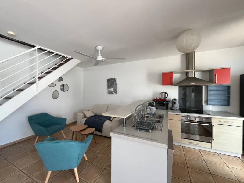 APPARTEMENT T4 À LOUER AU CENTRE-VILLE DE SAINT-PIERRE DE LA RÉUNION, venez découvrir un appartement T4 duplex meublé d'une surface habitable d'environ 86,44 m² au sein d'une résidence privée et sécurisée, à 12 minutes à pied du front de mer et à 9 minutes en voiture du CHU de Saint-Pierre.