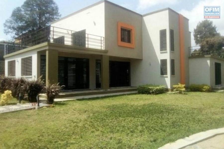 OFIM met en location une belle villa à étage neuve F7 , de haut standing avec un grand jardin sur la route de By Pass. Cette villa est luxueuse , spacieuse et lumineuse . Elle se trouve dans un endroit calme , bon voisinage et vue dégagée . La villa comprend : -Au rez de chaussée : un spacieux living de 120m2 à grande baie vitrée avec cheminée et donnant sur une cuisine ouverte placardée ,une toilette visiteur , une grande chambre de 32m2 ayant un dressing et une salle bain attenante avec une salle d'eau et toilette également, une pièce pouvant servir de bureau et une autre pièce pour rangement ou buanderie. -A l'étage : une espace lecture ou télé de 20m2 , une grande chambre de 32m2 ayant un dressing et une salle bain attenante avec une salle d'eau et toilette également, trois chambres toutes placardées , toutes les chambres donnent accès à une grande terrasse de plus de 30m2 , une salle de bain commune et une toilette. -A extérieur : un garage fermé pour 2 voiture , une dépendance pour le gardien , une autre dépendance pour la domestique , un coin pour cuisine d'été , un coin détente ou barbecue , un grand jardin gazonné et fleuri . Loyer 1200 Euros taux applicable selon cours du jour Contact 034 02 443 04 Mr Jacky 26A59554, Numéro de mandat: 817T2 Tél. commercial: 0340244304