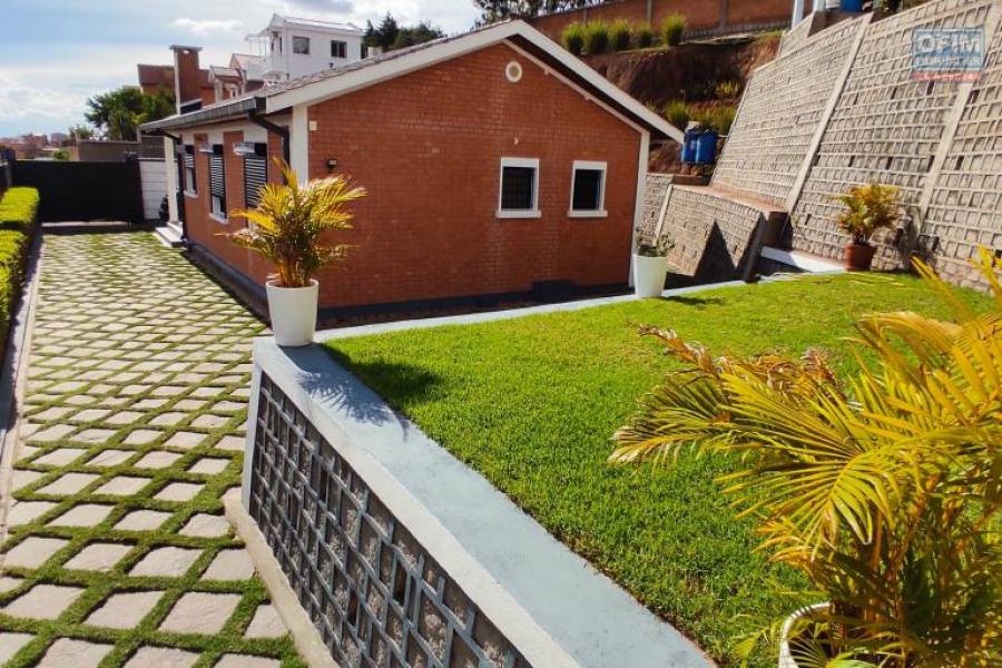 OFIM propose à la location une magnifique propriété dans un quartier paisible, avec de bons voisins, à seulement 5 minutes de la RN 7 et à 10 minutes de Tanjombato. Cette propriété comprend une maison d'architecte de 4 pièces, comprenant un séjour spacieux avec une cheminée prête à être utilisée et une terrasse bien ensoleillée. Elle dispose également d'une belle cuisine aménagée et équipée, de 3 chambres, dont une avec salle d'eau privative, d'une deuxième salle d'eau et d'un dégagement. La finition est de grande qualité, avec l'utilisation de matériaux nobles. En annexe, il y a un appartement indépendant de type T2 sur 2 niveaux. Au rez-de-chaussée, il y a un séjour et une cuisine, et à l'étage, une chambre. La propriété comprend également une belle cour aménagée, un beau jardin avec vue sur le by-pass et une dépendance pour le gardien. Une citerne d'eau est présente, ainsi que l'installation d'un chauffe-eau solaire et des placards dans les chambres en cours. Un système de sécurité DIRIX est déjà installé. Loyer : 3 000 000AR, Pour organiser une visite, veuillez contacter Francia au 034 02 218 69. 28A66731, Numéro de mandat: 372TT3 Tél. commercial: 0340221869
