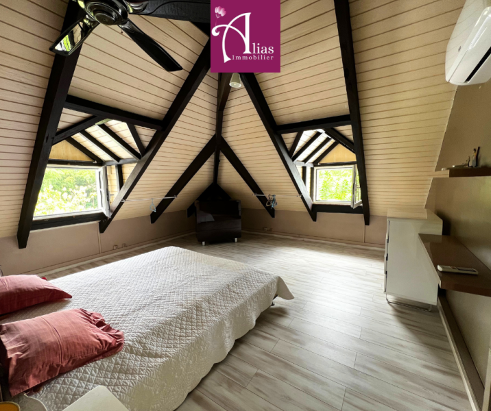 Alias Immobilier vous propose à la location une villa F6 avec bungalow située dans le secteur recherché de Castel au Lamentin. Nichée dans un environnement calme et verdoyant, cette maison familiale se trouve sur un superbe terrain arboré d’arbres fruitiers, au sein d’un domaine clôturé et sécurisé.