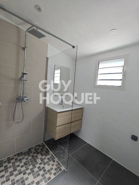 Guy hoquet vous propose en exclusivité cette maison de plain pied de type F3 sur un terrain de 538 m² comprenant une cuisine équipée (four, hotte, placards et plaque électrique), un séjour, une salle à manger, deux chambres, une salle d'eau, un wc et portail manuel. Les atouts : calme et agréable Places de parking Loyer TTC : 1 12 1 euros charges comprises dont 17 euros TOEM + 4 FAL Dépôt de garantie : 1100 euros Frais honoraires locataires : 798.98 euros Agence Guy Hoquet du Tampon [coordonnées réservées] [coordonnées réservées] Clarisse BOURRAT (EI) Agent Commercial - Numéro RSAC : 907539548 - Saint Pierre.