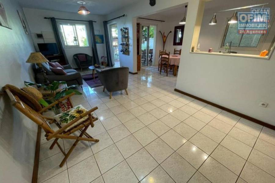 Meublé : Villa meublée de type F4 implantée dans un secteur calme, bénéficiant d'une vue montagne, comprenant: un séjour/salle à manger/cuisine, un dégagement, trois chambres climatisées et équipées de brasseurs d'air, deux salles de bains (douche italienne), deux WC et une varangue sur très beau jardin clôturé avec espace stationnement pour deux véhicules. Equipée d'un chauffe-eau solaire.