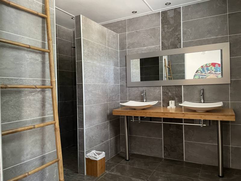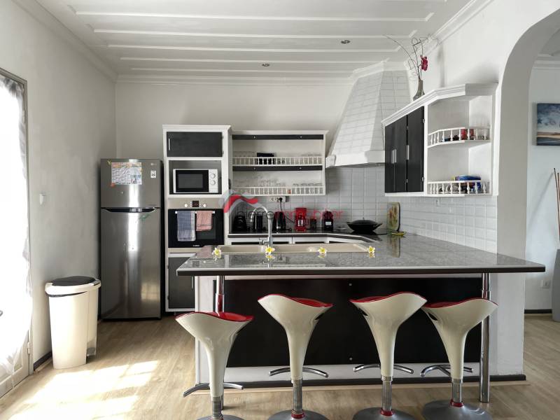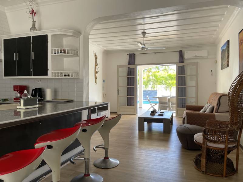 Cette propriété offre une cuisine équipée ouverte sur un séjour ventillé et cliumatisé, un espace nuit coomposé de 3 chambres ventillées et climatisées dont 2 avec leur propre salle d'eau et wc, une salle d'eau indépendante et un WC séparé.