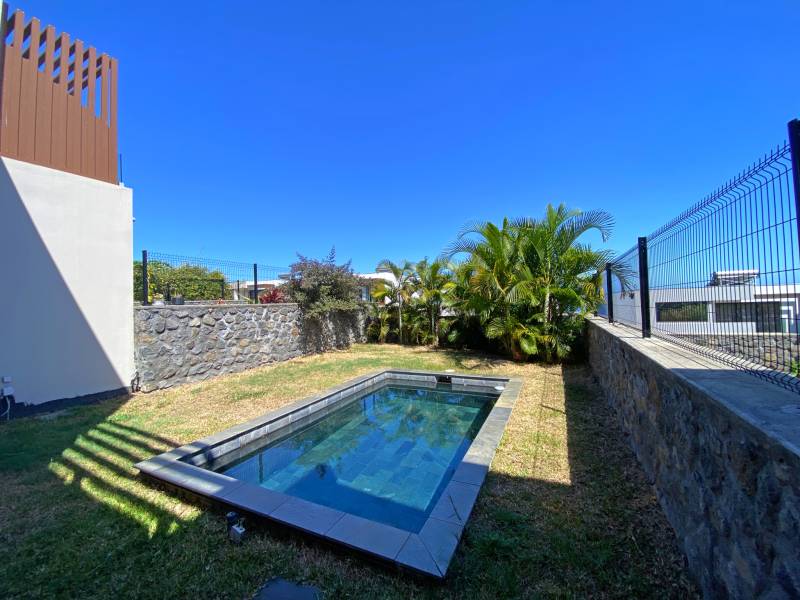 Lakaz Société immobilière vous propose cette magnique maison non meublée moderne de 5 Pièces diposant de 4 Chambres dont une belle suite parentale avec une baignoire et une douche à l'italienne et 3 chambres sur le R+1, une cuisine semi-équipée, 2 WC séparés, un salon spacieux, un hall d'entrée proposant une grande hauteur sous plafond, une terrasse ensoleillé et une piscine.